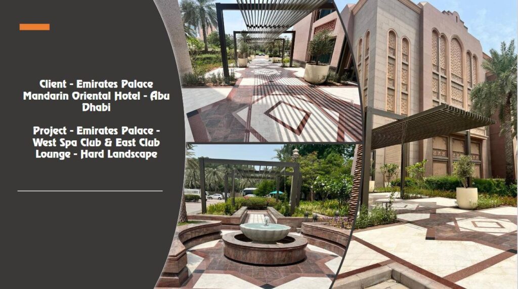 Executed premium hard landscape works for the Emirates Palace Mandarin Oriental Hotel, Abu Dhabi, delivering high-end stone